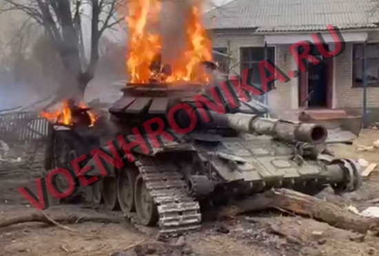 Танк ВСУ после попадания ПТУРа