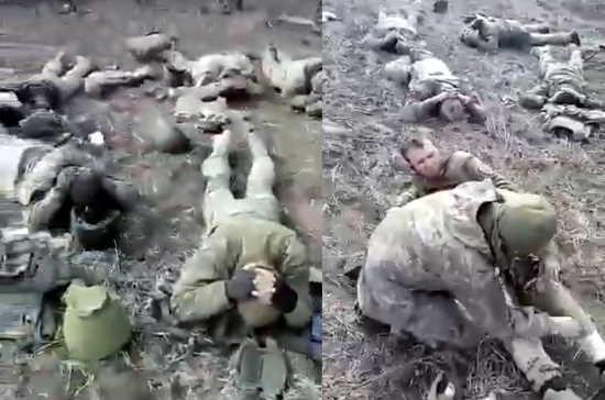 ВСУ попадают в плен. Место и время неизветны, но судя по всему одна из неудачных попыток прорыва из Мариуполя.