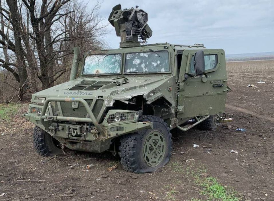 Очередной уничтоженный на фронте американский бронеавтомобиль Humvee украинских формирований