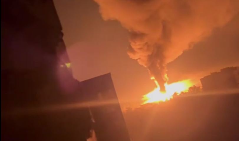 Еще одно эффектное видео прилетов "Гераней" по подстанции «Ивановка» (110/6 кВ) в Харькове. 23 сентября 2025 года.