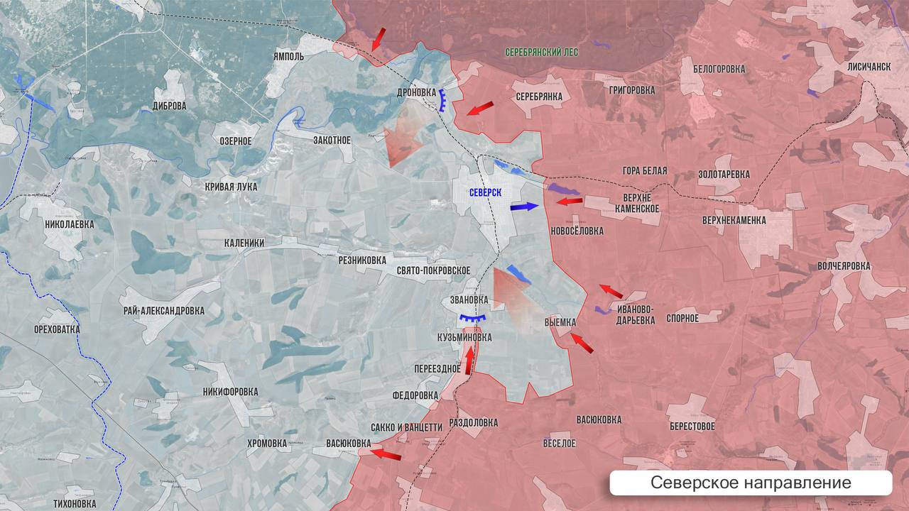 Согласно официальным сообщениям, на Северском направлении был освобождён Северск Малый — район, находящийся примерно в пяти километрах к северу от самого города и совсем близко к Дроновке. В южной части этого же направления есть сведения о продвижении в районе Выемки.