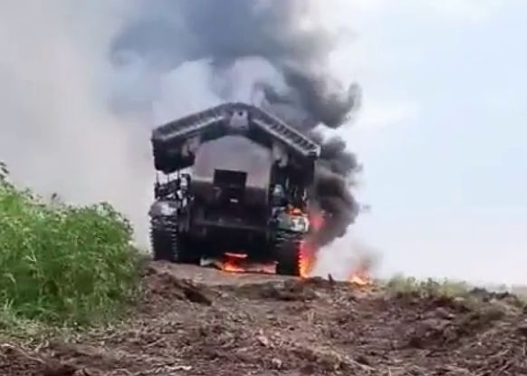 Автофиаско хохлопитеков на минном шлагбауме установленном у них в тылу с помощью тяжёлого дрона