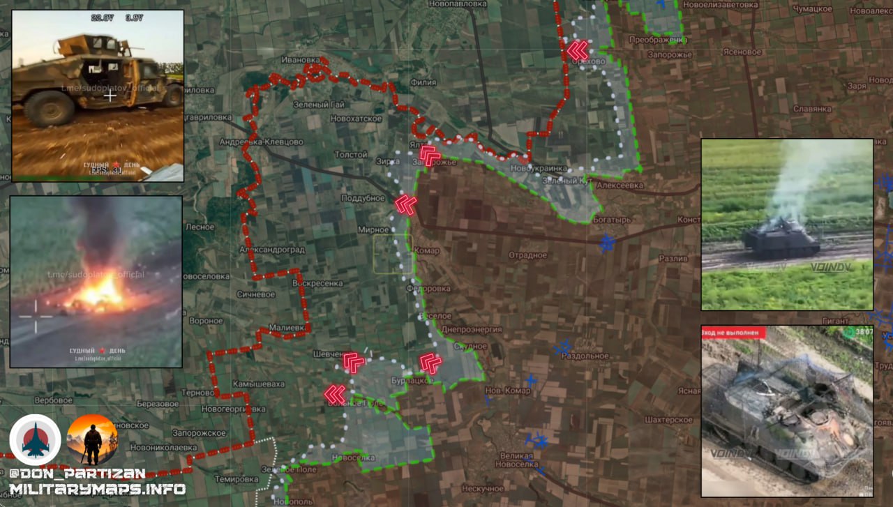 К северу от Новосергеевки подразделения ВС РФ продвинулись ещё до 700 метров, расширяя зону контроля в глубину. Продвижение сопровождается зачисткой посадок и логистических проходов, ранее использовавшихся ВСУ для переброски сил.