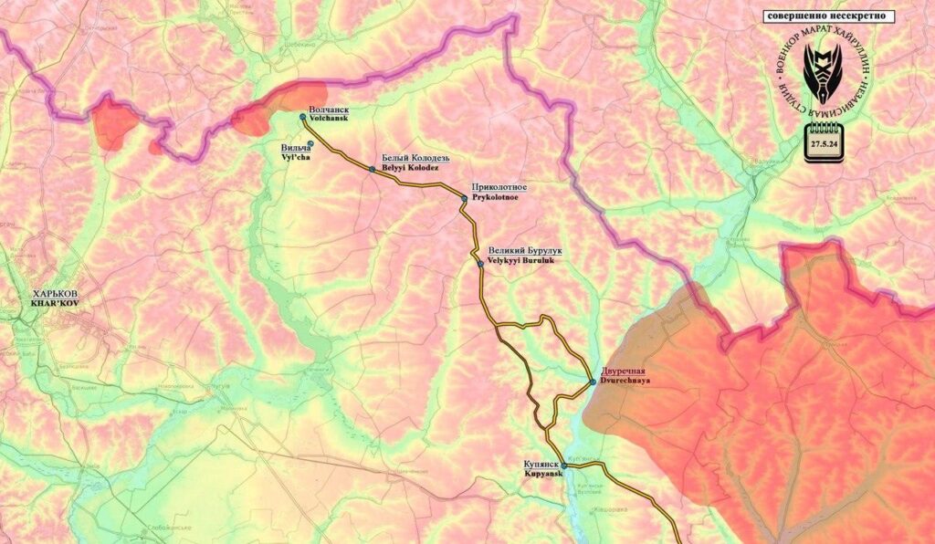 Вообще, явный интерес вызывает трасса Волчанск- Великий Бурлук- Купянск. Как только мы закончим зачищать северную часть Волчанска и перейдем в южную, то как раз выйдем на эту трассу, вдоль которой можно двигаться в спину всей оскольской группировки противника.